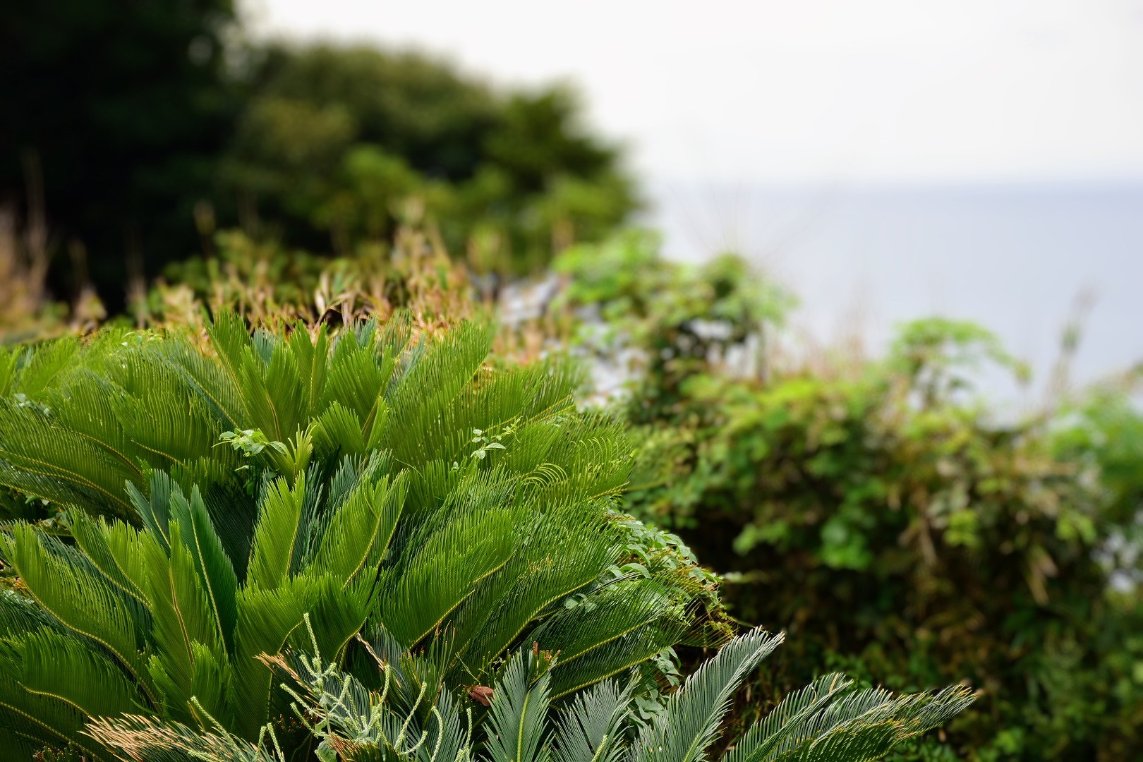 ハイキングコースの傍らには蘇鉄が植わっていて、南国気分になる。