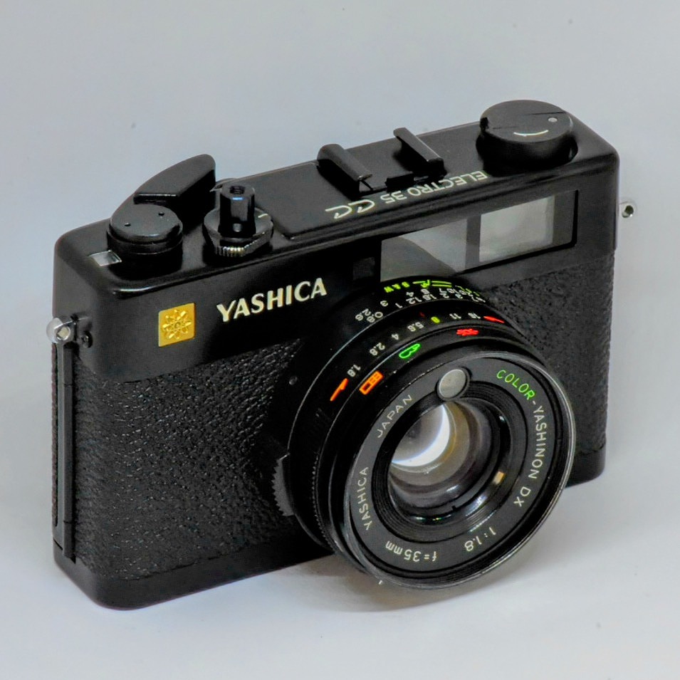 エレクトロ35CCはシリーズの中でも小型なボディにちょっと広角な35mm f/1.8のヤシノンレンズを搭載し、絞り優先オートでの撮影が可能な電子シャッター内蔵のレンジファインダーで、「ろうそく1本の明かりで撮れる!」というキャッチコピーで大ヒットしたカメラだ。