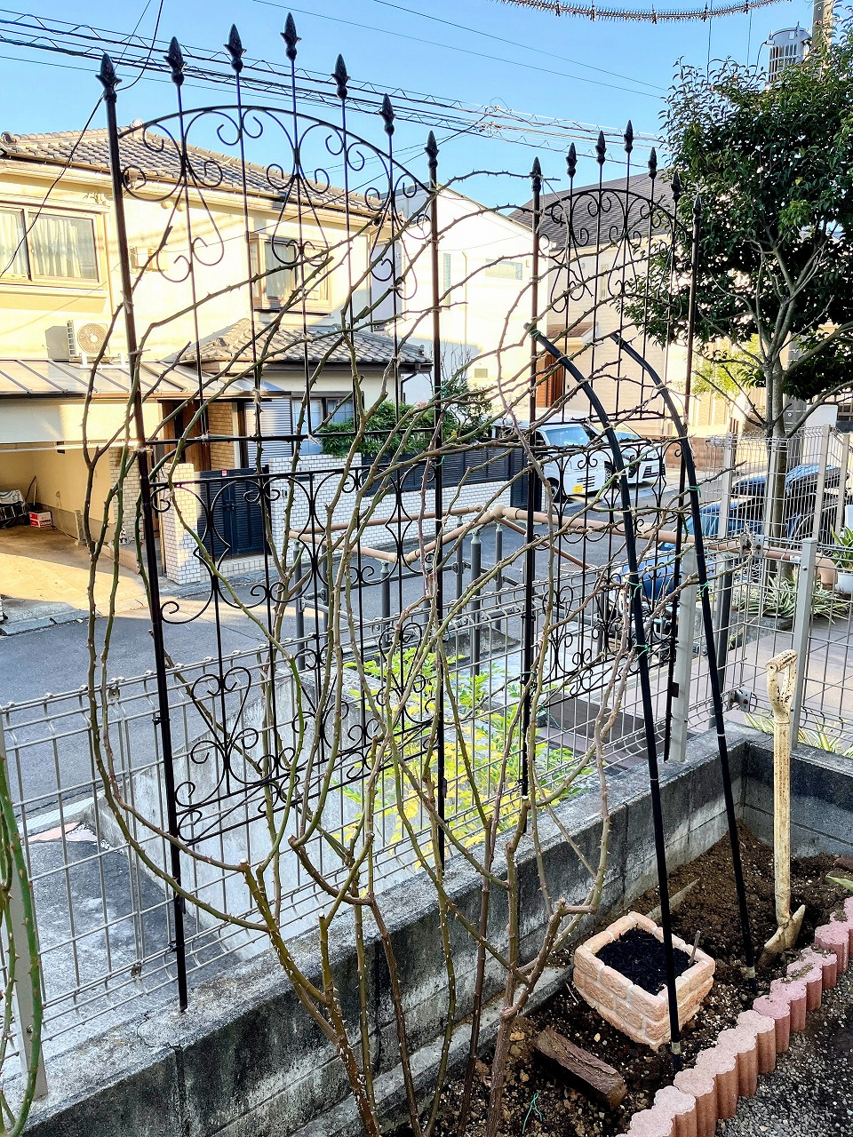 今日はポカポカ陽気だったのでバラの剪定と誘引を開始した。
