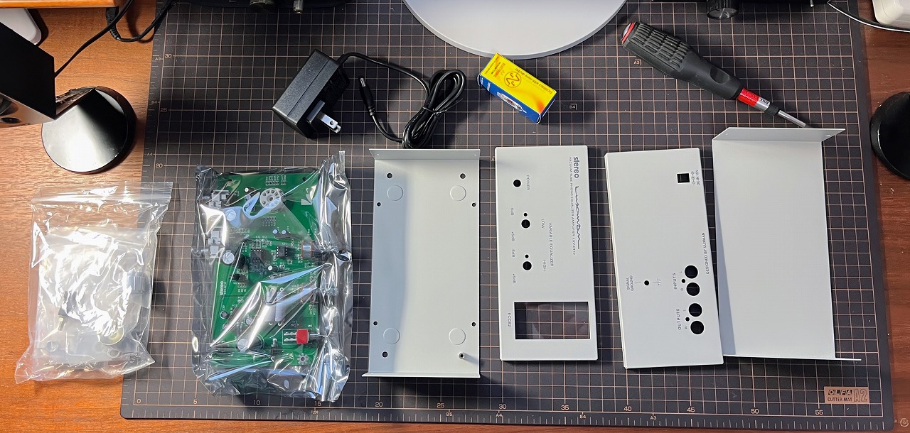 付属品のACアダプターがスイッチング電源で容量も小さいのが気に入らないが、まずはこのままで鳴らしてみる。二個あるオペアンプを交換してみても面白そうだ。
